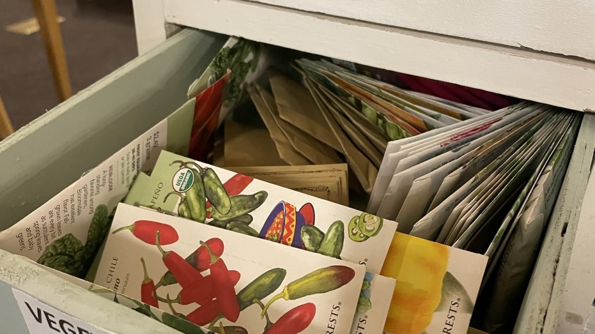 - Choose Your Seeds: Select up the seeds you want to use. Please only take what you can realistically use this season. There are blank packets available on the cabinet so you can take only the seeds you’ll be needing.