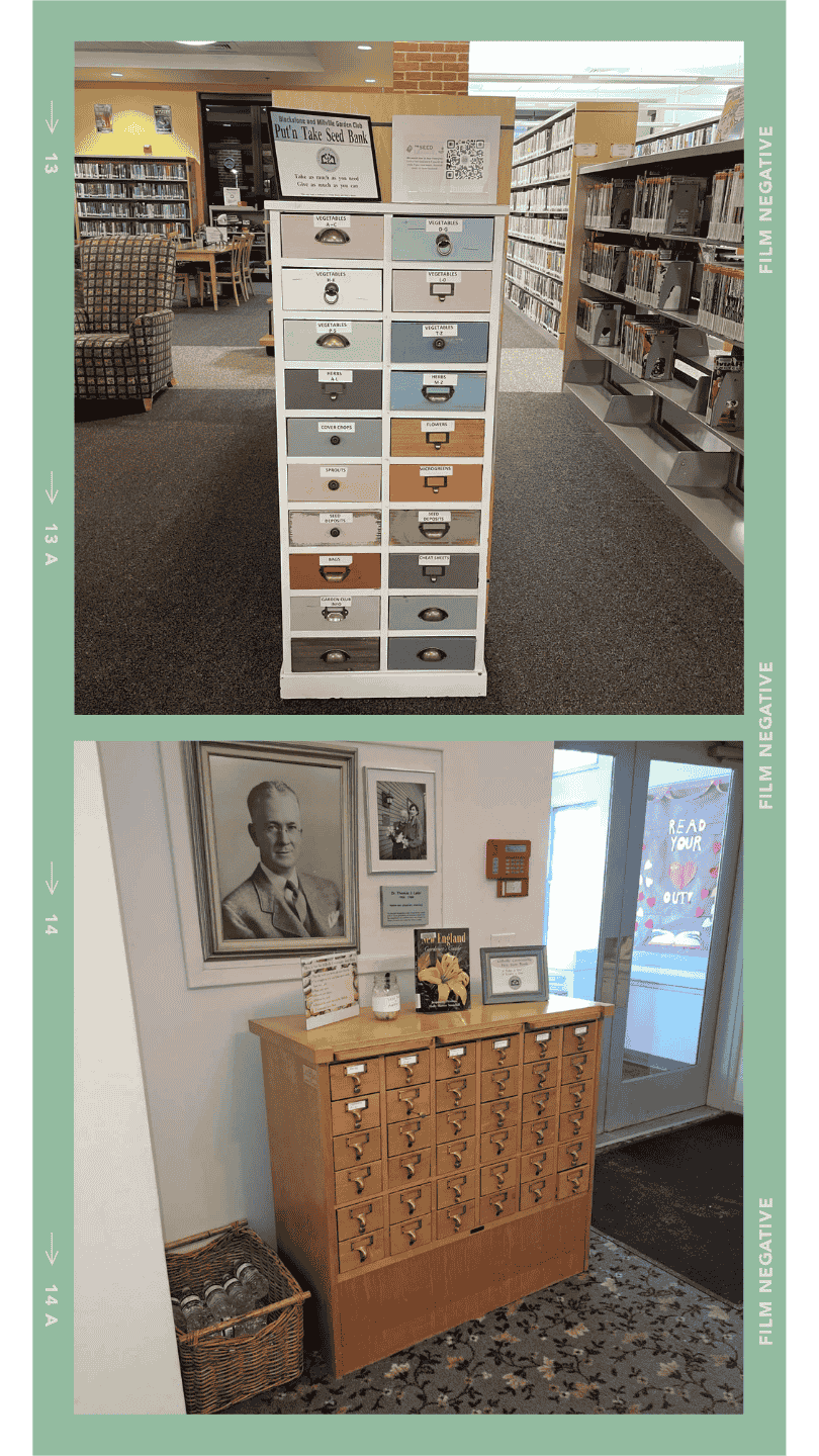 Come by the Blackstone Public Library to check out the Seed Library catalog. The catalog is located inside the library - when you enter the doors, turn left towards the young adult section. The seeds are in a cabinet by the Library of Things.